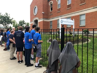 Mary's Pro-life Bootcamp is an apostolate of the Franciscan Daughters of Mary. This annual retreat for high-school students is focused on equipping and empowering teens to be pro-life leaders. Each year the campers participate in the weekly pro-life Mass and rosary procession at Holy Name as part of the retreat program. This year, The sisters began an annual middle-school day-camp/retreat, too; "Bootcamp jr." The Middle Schoolers also start their Saturday morning with Mass and prayer here at Holy Name.